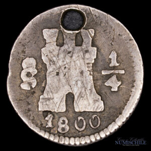 1/4 Real 1800 acuñado bajo el reinado de Carlos IV en la ceca de Santiago de Chile.