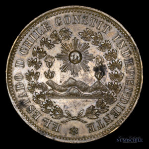50 Centavos 1865, acuñado en Santiago.